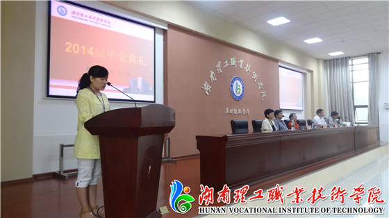 6月21日,上午9时,2014届毕业生在图书馆报告厅举行毕业典礼。院党委书记秦裕武,院长罗先进,副院长朱奇卫、洪丕庆、黄春霞出席此次毕业典礼。典礼由副院长洪丕庆主持。