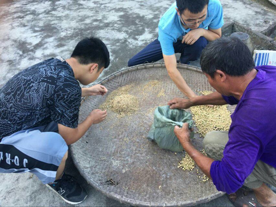 吴爱华老师、邹智伟同学、杨洋同学实践小组帮村民淘米