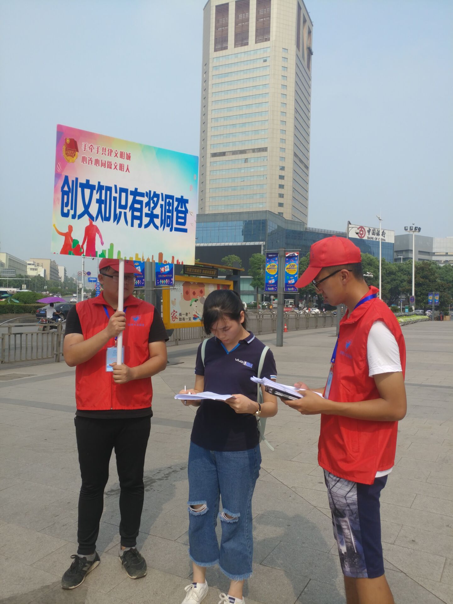 为积极响应市委、市政府创建全国文明城市的号召,深入学习贯彻习近平总书记系列重要讲话精神特别是关于精神文明建设的重要论述,认真落实全国创建文明城市工作经验交流会议精神,通过广泛开展城市文明志愿者服务行动,引导广大团员青年以志愿服务的方式积极参与和支持创建全国文明城市,2017年7月29日至30日,我校暑期创文志愿服务团开展了创文知识问卷调查活动。
