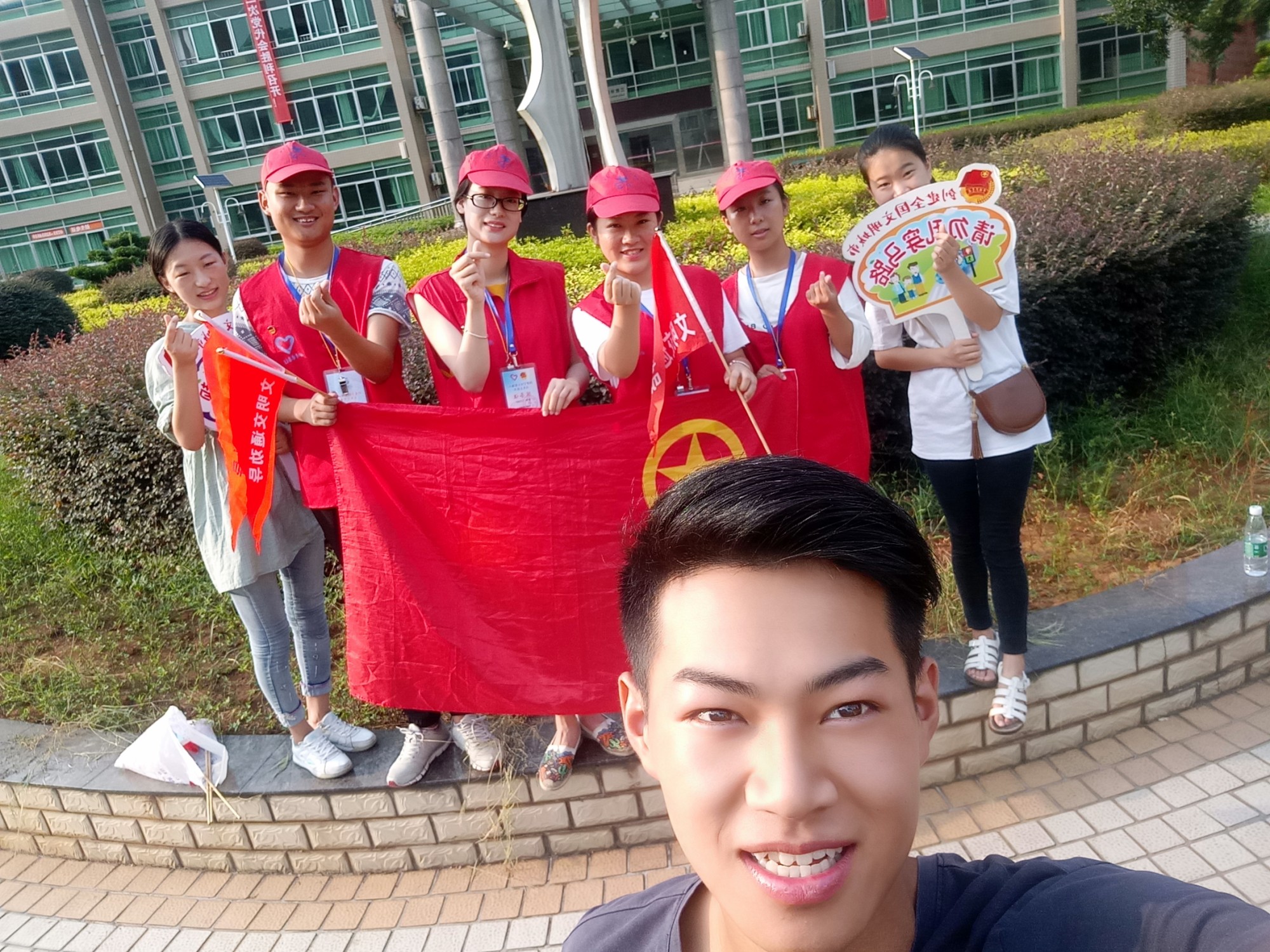 清晨6:00我们可爱的志愿者们早早的起床,前往服务地点进行 创文工作。