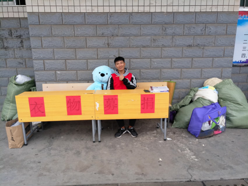 2017年11月10日至12日校团委青年志愿者服务中心连续三天在校宿舍楼下开展了“衣份爱心,衣份温暖”爱心衣物募捐活动,旨在通过校团委青年志愿者服务中心这个平台,将同学们的爱心衣物捐赠到贫困山区,给予那些真正需要帮助的人。