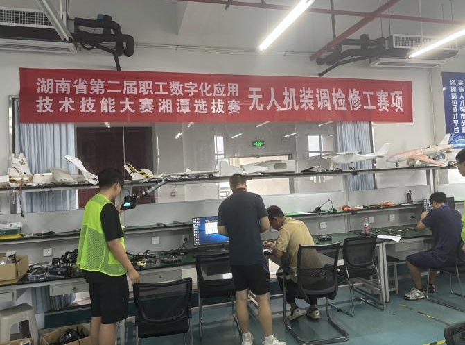 无人机装调检修工赛项:8:30—14:30 在湖南理工职院(北院)新能源大楼南栋 509 室开展,赛项面向从事无人机装调检修工作的职工,考核选手在无人机基础理论和相关法律法规知识、无人机选型、整机装配、系统调试、故障检修、飞行操控和作业等方面的综合能力,旨在推动数字化时代下的无人机产业高质量发展。