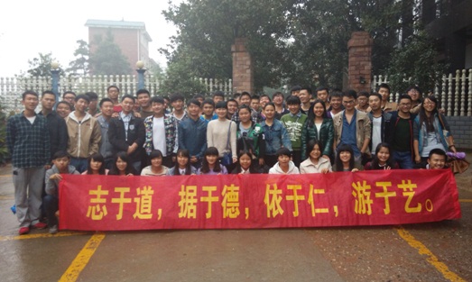 活动当天,虽然下着雨,但同学们的热情不减。大家在约定时间有秩序的先后搭乘事先组好的车前往活动现场。一路上还唱起班歌“勇敢飞翔”,气氛非常好。