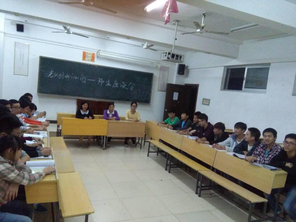10月10日下午,光伏材料1141班在三教404举行了师生座谈会,专业带头人向钠博士、辅导员彭文阁、任课老师汤秋芳以及全班同学参与了本次座谈会。