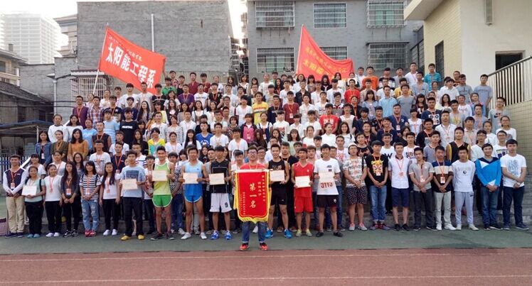 2015年10月24日下午四点十五分,湖南理工职业技术学院第七届田径运动会画上了完美句点。在这两天里,运动场上进行着精彩而激烈的角逐。有参赛选手的坚持不懈,有后勤队员的体贴帮助,有全院师生的运动精神。运动会期间,太阳能工程系运动健儿们志气昂扬,勇于拼搏,永不服输。我系在各项赛程中都获得了优异的成绩,最激动人心的是最后一项4X100接力,我系选手勇夺桂冠。