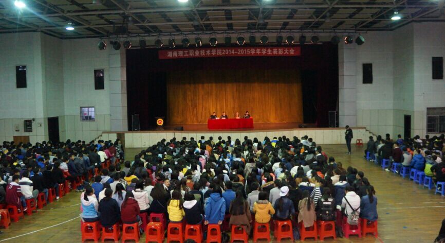 2015年11月17日下午,湖南理工职业技术学院2014-2015学年学生表彰大会,在校体育馆报告厅隆重举行。党委书记秦裕武老师、院长罗先进老师、副院长洪丕庆老师和朱奇卫老师及各系辅导员老师出席了本次大会,此次会议由副院长朱奇卫老师主持。
