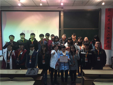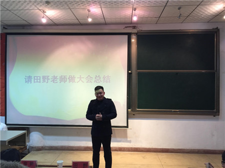 伴随着音乐,全体人员奏唱团歌,一种庄重的自豪感油然而生。首先,戴科老师宣布被评为本学年优秀部门和个人优秀干事,然后由大一新干事段贤学和黄青梅同学代表上台发言,随后主席团各位成员也依次做了工作汇报。其次,向钠博士对于考试诚信问题以及目前学生工作存在的问题做了讲话,鼓励同学们抓紧时间,切莫虚度时光。美好的时光总是短暂的,在大会的尾声,田野副书记发表致辞。他的每一句话堪称经典,笑点连连,欢乐多多。强调了机遇与安全的重要性,同时也提出一些建议,希望学生会更有魅力与竞争力,更有担当与合作精神。