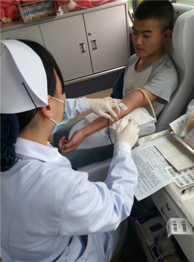 在献血现场,我院的同学们淡定从容,有说有笑,对于献血仿佛一点也不害怕,轻松的态度冲淡了采血过程中产生的紧张心理,整个填表、排队化验、采血的过程,始终都在一种愉快的氛围中有序的进行着。截止到下午五点,我院共有40多名学生参与了献血,他们的行动值得我们学习,同时我们也希望有更多的同学能够加入到献血的行列中来,把爱心奉献给社会需要帮助的人群,从我做起,从现在做起。(图/文:外联部 编辑:戴科)