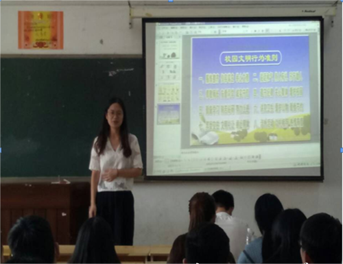 创建文明城市,构建和谐校园 。9月13日下午,新能源学院工程造价1152班在三教406教室开展了“创建文明城市,构建和谐校园 ”主题班会。杨菲老师以及彭文阁老师应邀观摩了此次班会。