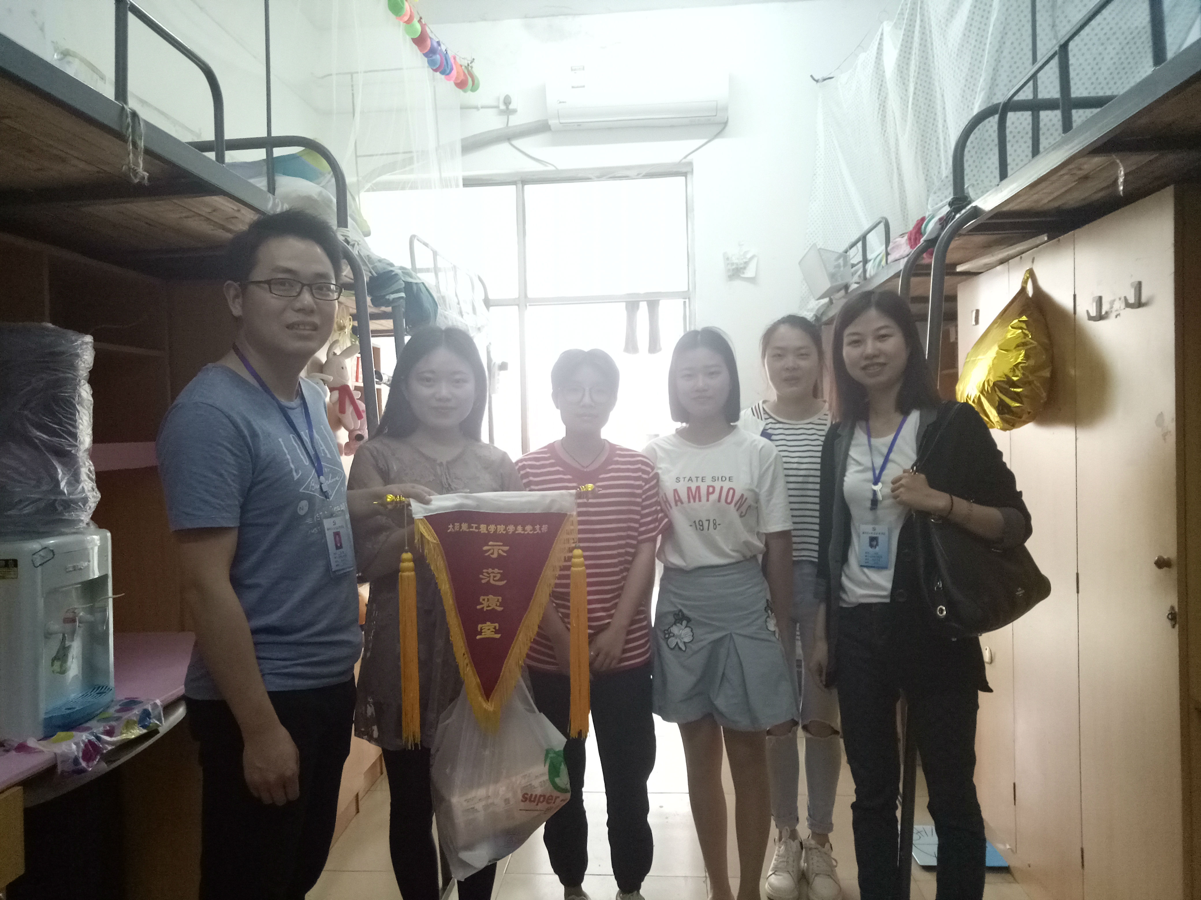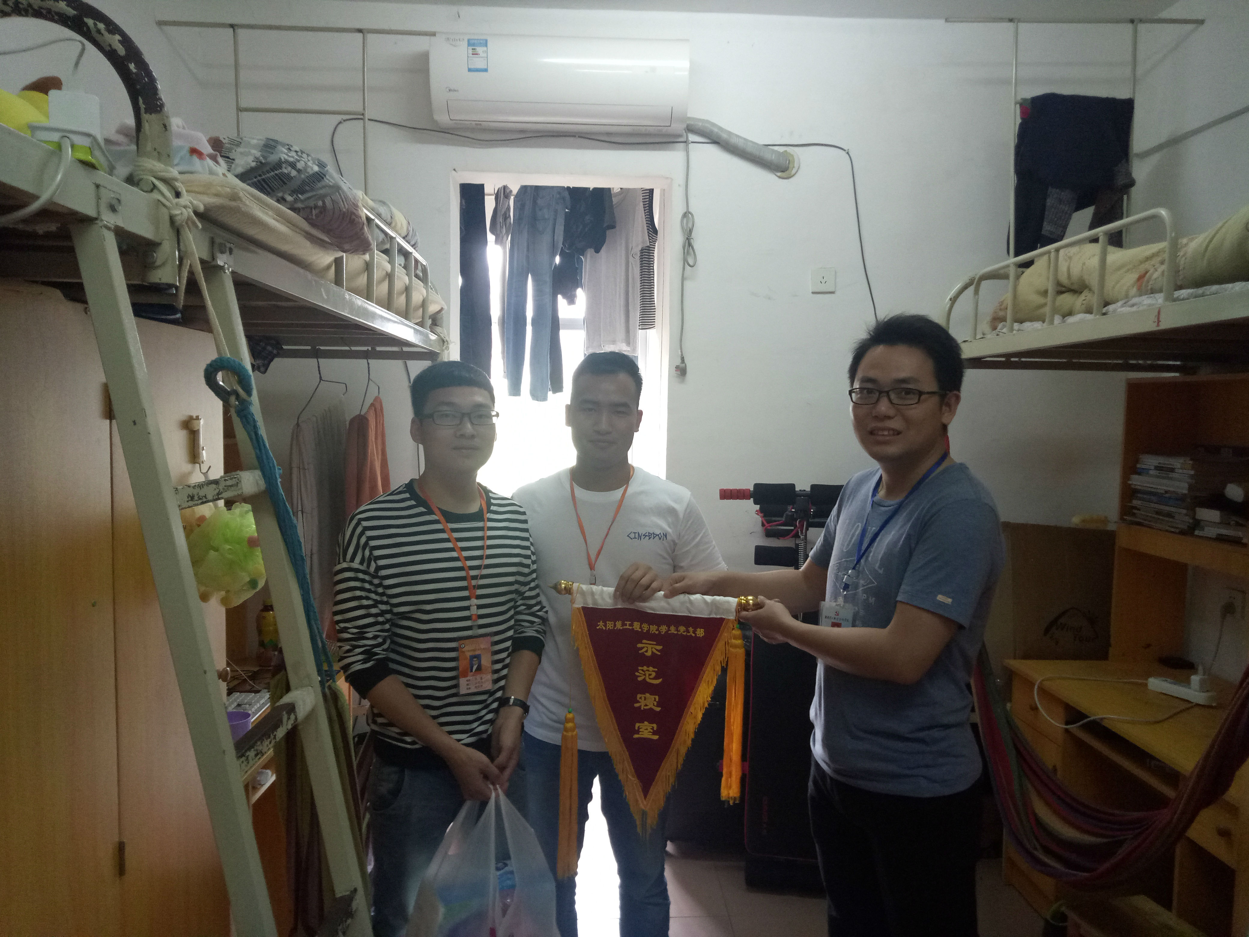 5月5日中午,我院党总支副书记李强老师以及学管干事刘堃老师带领部分学生会干部对党员寝室卫生进行了抽查,对优秀党员示范寝室进行视察表彰,颁发示范寝室“流动红旗”以及礼品。表彰过程中,李强老师对优秀寝室的进行了表扬,同时也指出了不足,在颁发奖品锦旗之后,亲切的与各寝室成员合影留恋。(通讯员/刘堃)