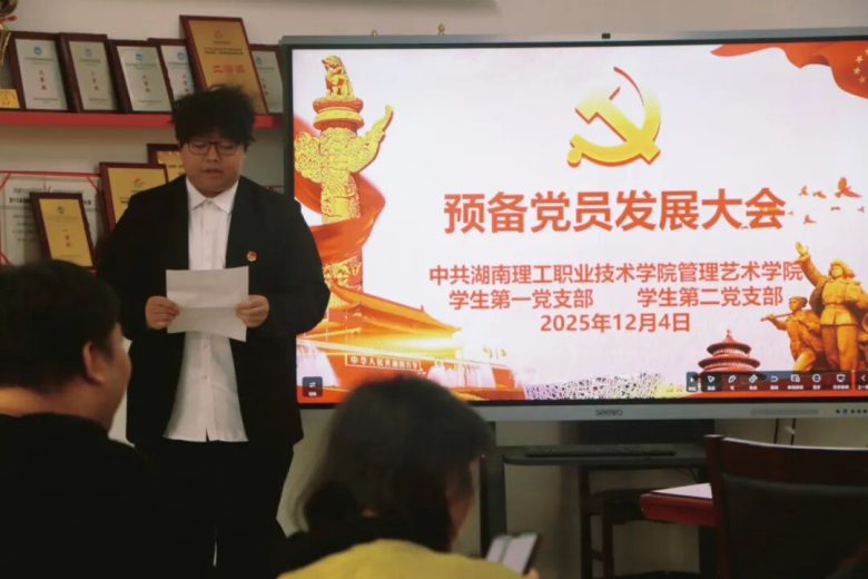 根据党员发展工作程序,管理艺术学院学生党支部于2025年12月4日上午在明理楼五楼党员活动室召开支部大会,讨论接收廖卓鹏等7名同志为预备党员。大会开始,主持人宣读了本次会议议程,并向大会通报了7名同志的政审情况和其他要向大会说明的情况。廖卓鹏等7名同志一一在大会上郑重的提出加入中国共产党的申请,7名同志的培养联系人逐一详细介绍了其在入党积极分子期间的培养情况。 在充分听取了7名同志的入党申请和他们的培养联系人意见后,支部大会展开讨论并对全部申请加入中国共产党的发展对象进行逐一表态发言,随后进行无记名投票,根据票决结果,支部大会同意吸收廖卓鹏等7名同志为中共预备党员。
